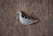 豚革に綿を詰めたドバトのブローチです。