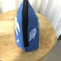 綿100%の可愛いポーチに、ロウケツ染の技法を使って、カモメをデザインして染めました。