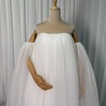 ウエディングドレス ベアトップ ふわふわ袖 揺らめく裾 ロング 細見えシルエット ファスナー 2次会/合コン