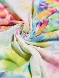 全て染色されるタイダイ染め、絞り染めの作品群。