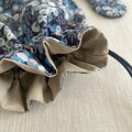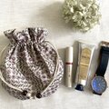 リバティタナローン生地を使って、ころんと丸い巾着ポーチを作りました。
