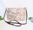 優しい色合いのベージュ地(薄いピンク色に近い色合いです)に上品で華やかなクラシックフラワー柄の2WAYバックインバックです。