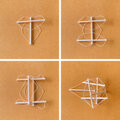 輪にした麻糸を丸棒の両端にはめ込んだもの6本を組み立てます。