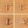 輪にした麻糸を丸棒の両端にはめ込んだもの6本を組み立てます。