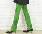 極上の穿き心地!ティアレ柄のストレートストレッチロングパンツ グリーン 大きいサイズあり