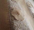 ビスケットのようにも見える花の、そばかすみたいなビーズは、敢えて光を抑えたマットなものを選びました。