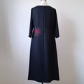ラウンドネックで後ろファスナー、袖は細身で8分位です。