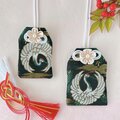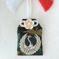 新年の縁起物にぴったりな、幸福・長寿祈願の鶴柄お守り袋、完全手作りのギフトです