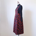 着物をリメイクして深いVネックのジャンパースカートを作りました。
