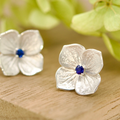 【天然サファイア】五月雨のアジサイ•ピアス【スターリングシルバー製/天然石ブルーサファイア/フラワーモチーフ】