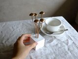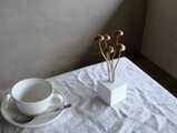 大きなキノコのオブジェができました。白い土台からブロンズ色のキノコが5本シュッと上に向かって伸びている、細長いフォルム。土台は白い石膏ですから、アロマオイルを染み込ませてアロマストーンとしても使えます。