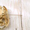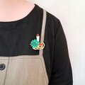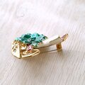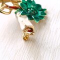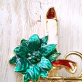 グリーンのポインセチアが添えられたクリスマスキャンドルのヴィンテージブローチです。