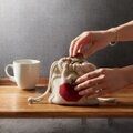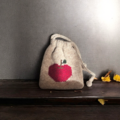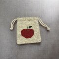 シェットランドウール100%の毛糸でりんごを編み込んだ巾着です。