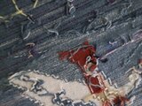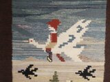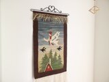 スウェーデンの代表的な物語『ニルスのふしぎな旅』を描いた、手刺繍のヴィンテージタペストリー。