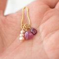 発色のきれいなガーネットの小さな粒をたっぷり使ったフリンジタイプのチャームです。ボトムには小さなドロップカットのトルマリンが輝きます。トルマリン底部に小さなキズがあります。単品でお使いいただいたり、他のトップと組み合わせてお使いください。
