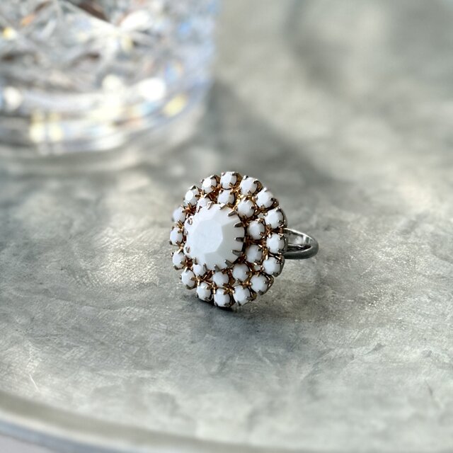 R409-ヴィンテージリング U.S.A. 1970〜80's White Glass Faceted Adjustable
