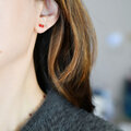 小粒のリボンの形の赤サンゴ(レッドコーラル) を、繊細なゴールドワイヤーで