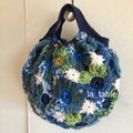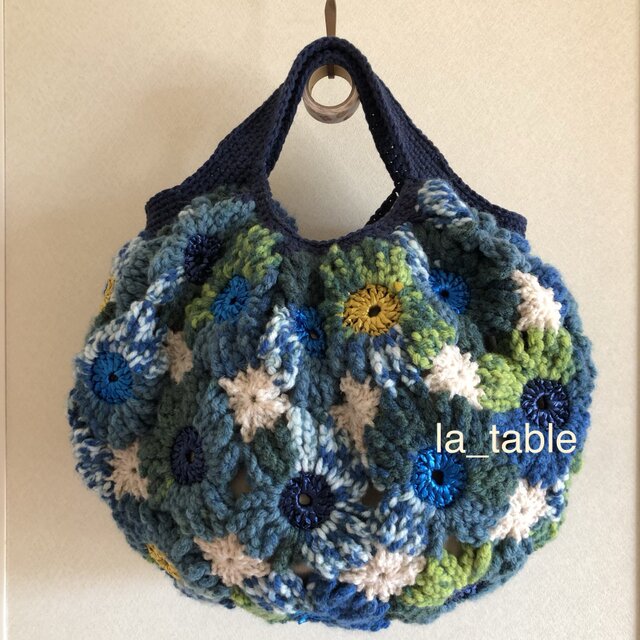 フラワーモチーフをたくさん繋いで、バッグに仕立てました。