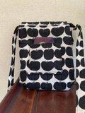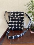 リンゴ柄の可愛いポシェットです。大きめの蓋付きなので安心感があります。