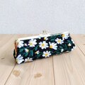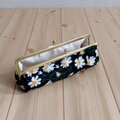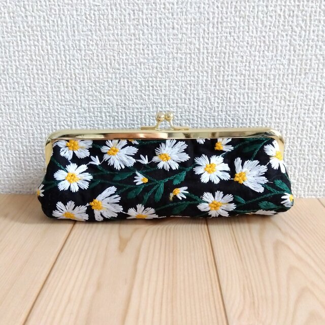 刺繍 がま口ペンケース 口金16.5cm 花柄 デイジー ブラック 515