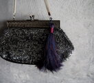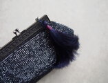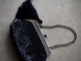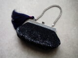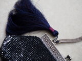 ビンテージバッグ ビーズバッグ ダークブルーグレー タッセル付き