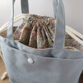 【送料無料】帆布の巾着トートバッグ 在庫限り 巾着バッグ 帆布トート 帆布バッグ リバティ×ライトグレー 小さめ No.411
