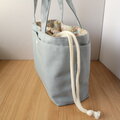 普段は巾着部分を内側へ折って普通のトートとして、入りきらないものがある時だけ巾着部分を出して…と2通りの使い方ができるので、とても便利です。