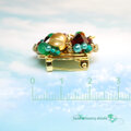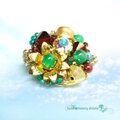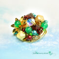 二重花弁のゴールドフラワーの中心で輝くのは、艶やかな緑が魅惑的な天然石グリーンオニキス。