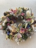 素材はドライフラワーの、ミニバラ、紫陽花、リンドウ、スターチス他数種。