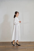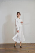 ヨークにオリジナルのゴージャスなトーションレースをあしらった清涼感ある真っ白なリネンのワンピース、長袖で、シャリ感のあるソフトで質感高い国産のリネンの生地は、珍しく、大人の高級な夏のエレガンスファッションが装えます。