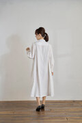ヨークにオリジナルのゴージャスなトーションレースをあしらった清涼感ある真っ白なリネンのワンピース、長袖で、シャリ感のあるソフトで質感高い国産のリネンの生地は、珍しく、大人の高級な夏のエレガンスファッションが装えます。