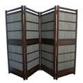 簾屏風 訳あり 4連 ダークブラウン木簾 衝立 パーテーション