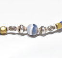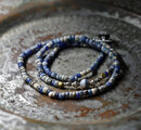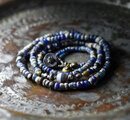 留め金の輪っか部分や、留め金付近のブルーやインディゴブルーなどのビーズはインドパシフィックビーズです。