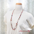 魅力あふれる赤のビーズたちを贅沢に組み合わせた一本は、ニットスタイルにも負けない存在感。