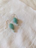 球根の花の陶土ブローチ(ブルーグレー)お花の球根をイメージしたブローチ。 楕円の形とブルーグレーの色使いがとても合っていて無限のセンスを感じました.大事に着けさせて頂きます。