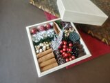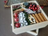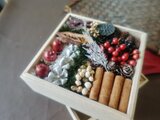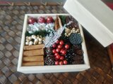 おせちのように木の実を敷き詰めた木箱アレンジ。