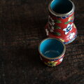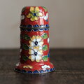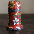 赤に草花◆中国七宝焼 小物入れ 楊枝入れ チャイナレトロ シノワズリ インテリアオブジェ i1