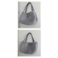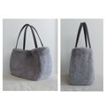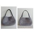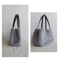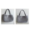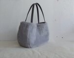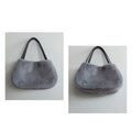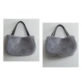 秋冬にぴったりな毛足が短く、柔らかい肌触りのラビットボア(エコファー、フェイクファー、ボア、ソフトファー)のグレーを使用した、ぷっくりした形が可愛い2通りの形で楽しめ、持ち手はグレーの帆布で幅は細めの華奢持ち手、長めなのでダウンなどの厚みのあるコートを着用しても肩掛け出来るバッグに仕上げました。