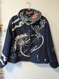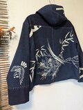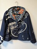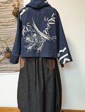 古布リメイク 松竹梅リバーシブルミニフードジャケット 筒描き 久留米絣 型染 古布 着物リメイク