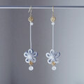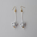 ゴールド色の花型の金具と、フロスト加工のアクリルビーズを合わせて