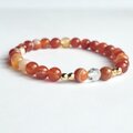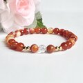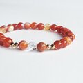 縞模様が可愛いサードオニキスと中央に輝くカット水晶・ゴールドカラーのヘマタイトが印象的なおしゃれなブレスレットです。