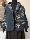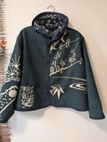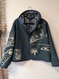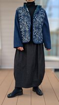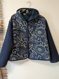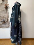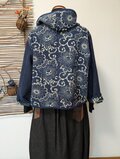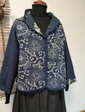 古布リメイク リバーシブルミニフードジャケット 筒描き 久留米絣 型染 古布 着物リメイク