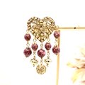 細やかな装飾が施されたゴールドトーンのハートから、ワインレッドのマーブルビーズとメタルビーズがゆったりと揺れ、奥行きのあるリズムを生み出します。