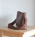 コンパクトなレザーショルダーバッグ。