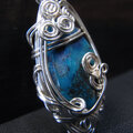 ナミビア産クリソコラタンブルに、ワイヤーアートを施したペンダントトップです。