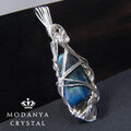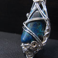 ナミビア産クリソコラタンブルに、ワイヤーアートを施したペンダントトップです。