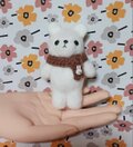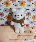 羊毛フェルト製のクマのぬいぐるみ、マフラーとウサギのチャーム付き。