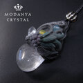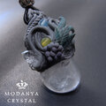 水晶のタンブルに、樹脂粘土(グレー)でアートしたペンダントトップです。