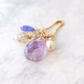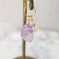 アメジストとシトリンが混ざりあったバイカラーの水晶「アメトリン」のラフロックタンブル(ハンマーロックカット)を使ったチャームです。原石を割っただけのナチュラルな形状で、切り口の氷のような澄んだ輝きと艶が素敵です。こちらはアメジストが強くでている部分を使っています。