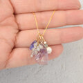 大小のパールの間にブルージルコンを挟んだチャームです。マダガスカル産ピンクサファイアのトライアングルブリオレットビーズを使ったチャームです。単品でお使いいただいたり、他のトップと組み合わせてお使いください。